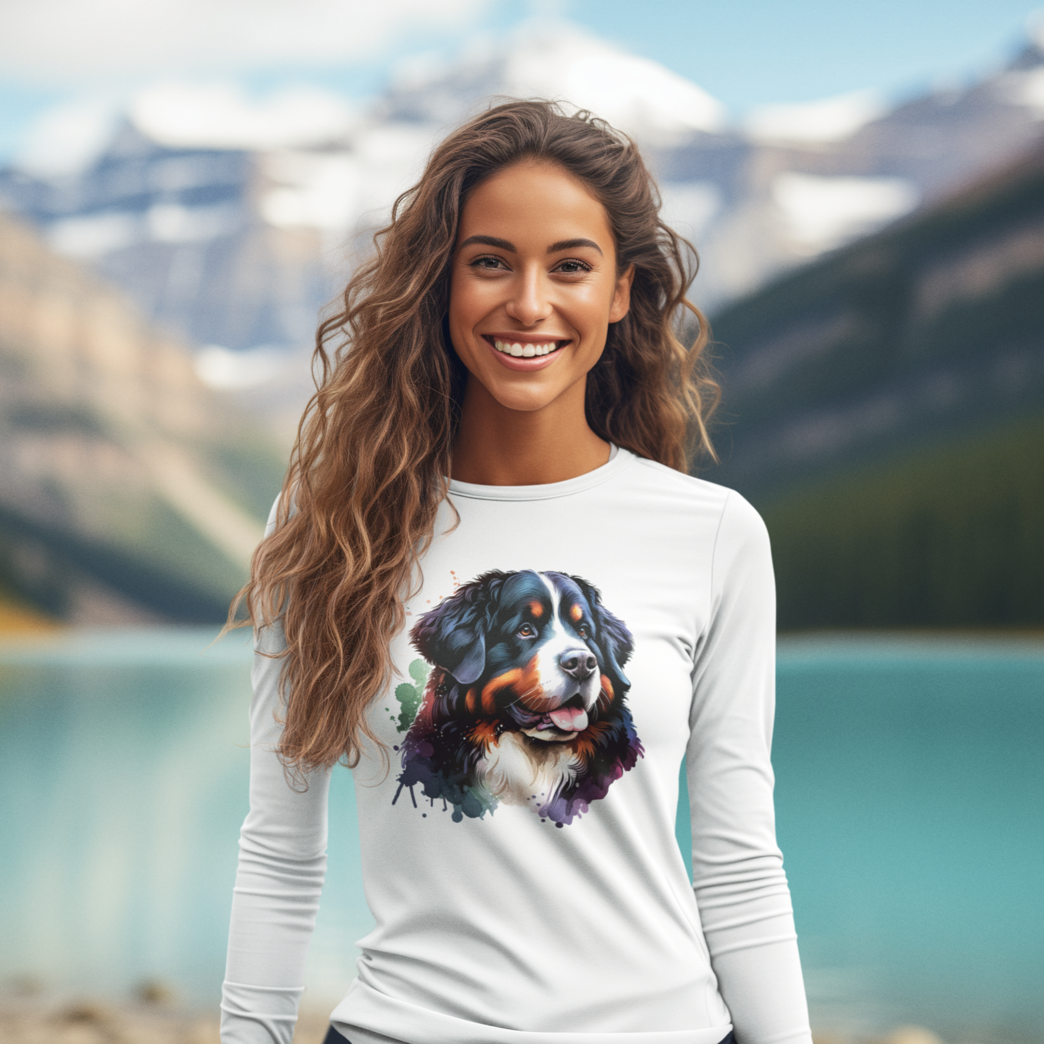 Hey ladies! Bernese Mountain Dog fans, this one’s for you! Dive into the whimsical world of dog-inspired fashion with our luxurious watercolor masterpiece long sleeve T-shirt. This tee is a true testament to our love for these loyal companions, designed to elevate your fashion game with a burst of dog-inspired happiness. Flaunt your Bernese Mountain Dog passion with grace and style.