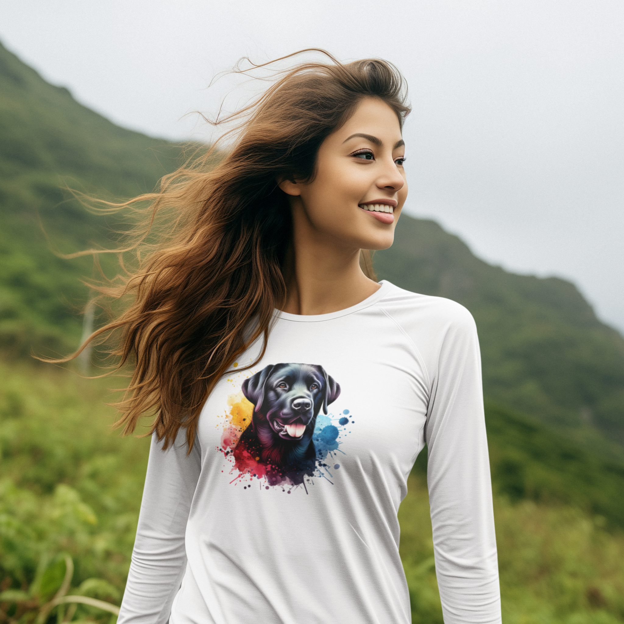 Perfect for any energetic adventure, this tee pairs wonderfully with sporty leggings, hiking shorts, or even an active skirt. The unique watercolor design adds a touch of energy and excitement to your everyday look. So why wait? Show off your Black Labrador love in the most bold and energetic way possible!
